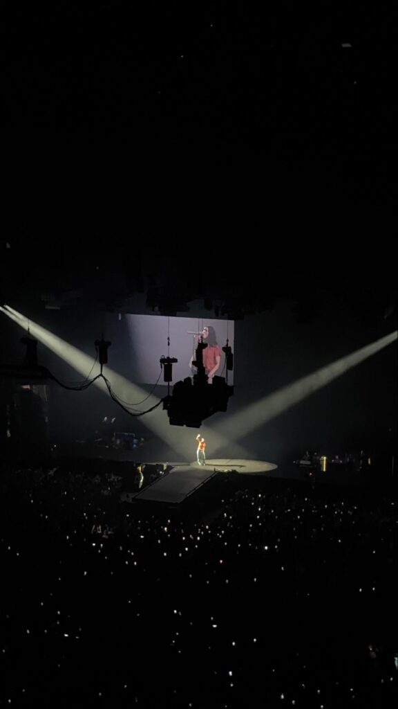 Lorde made her way through the crowd during the last song of the album, “David,” comparing herself to Michaelangelo’s David in one of the most raw songs about feeling molded and carved for the music industry.. She sings, “Oh dark day was I just young blood to get on tape? / ’Cause you dimmed me out when it got hard/ Upper cut to the throat I was off guard / Pure heroine mistaken for featherweight.” In the final line, the phrase “pure heroine” is a reference to Lorde’s debut album of the same name. Here, Lorde asserts that the album’s fame and cultural impact, with hit songs like “Ribs,” was mistaken for something frivolous and light, like feathers.